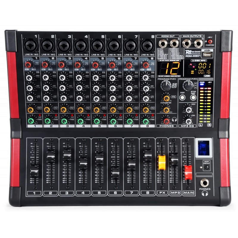 Mikser muzike u punoj veličini sa 8 kanala. Dostupan je standardom sa ugrađenim BT prijemnikom i 24-bitnim Multi-FKS procesorom sa 16 presetova.