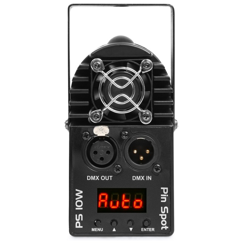 PS10V je svetao Pin Spot sa 4-u-1 LED od 10V. LED dioda se sastoji od crvene, zelene, plave i bele boje. Zbog uske tačke idealan je za gađanje ogledalskih kuglica. Dajući efekat galaktičkog mlečnog puta kada se snop reflektuje na ogledalima. Pin Spot se može kontrolisati preko DMKS-a ili pokrenuti samostalno u automatskom ili zvučnom aktiviranom režimu. Tačka može da menja boje tokom vremena ili da se podesi na određenu boju. Čak i nakon isključivanja napajanja, tačka će zapamtiti svoje poslednje podešavanje.