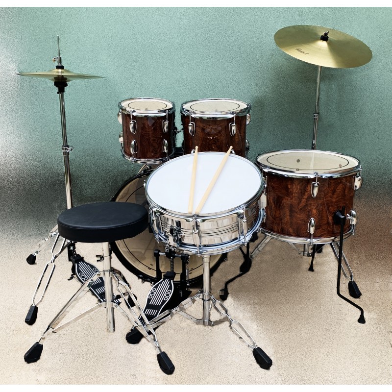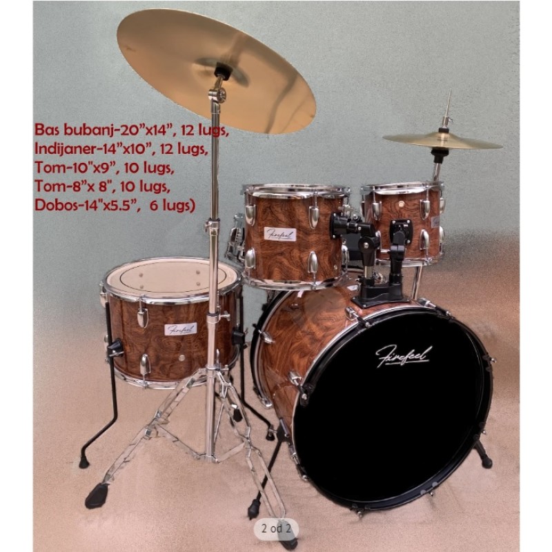 U kompletu se prodaju bas bubanj, doboš, dva timpana, floor timpan, i Hi-Hat stalak, stalak za činelu,ride cinela ,