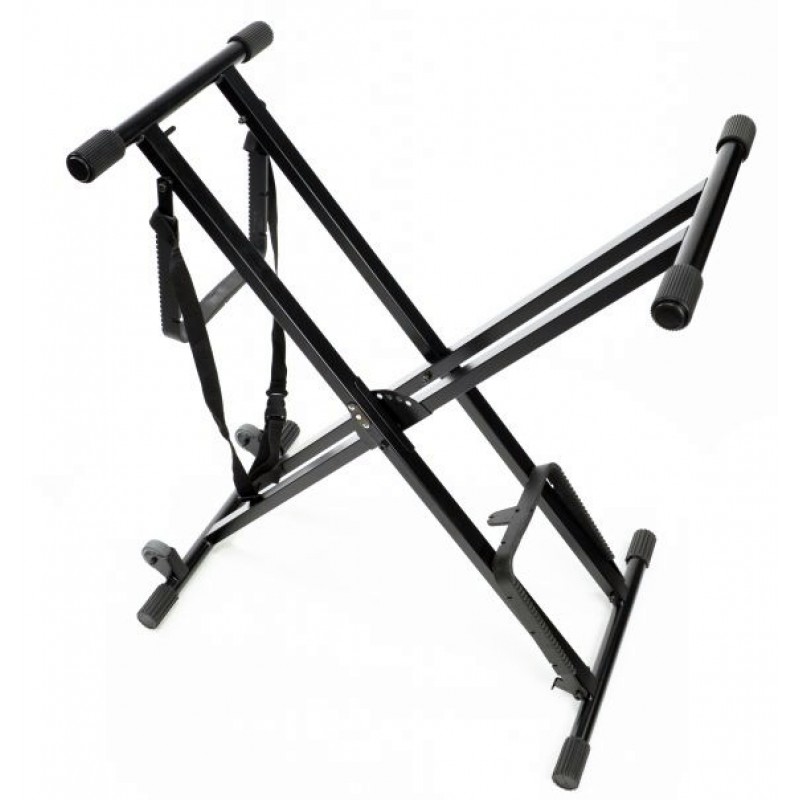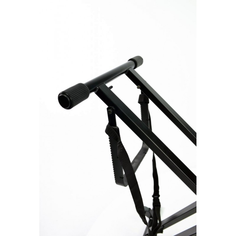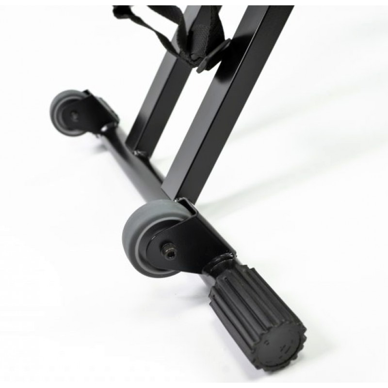 Stalak za klavijaturu koji nije samo "stalak za klavijaturu"??? Osim što služi svojoj primarnoj nameni, ovaj stalak za klavijaturu Vam omogućava i jednostavniji transport Vašeg instrumenta, Express lock regulaciju zaključavanja i čvrstu i dugotrajnu konstrukciju u godinama koje idu. Opremljen je sa safety belt-om koji drži instrument i sa točkićima u nižem delu stalka.
