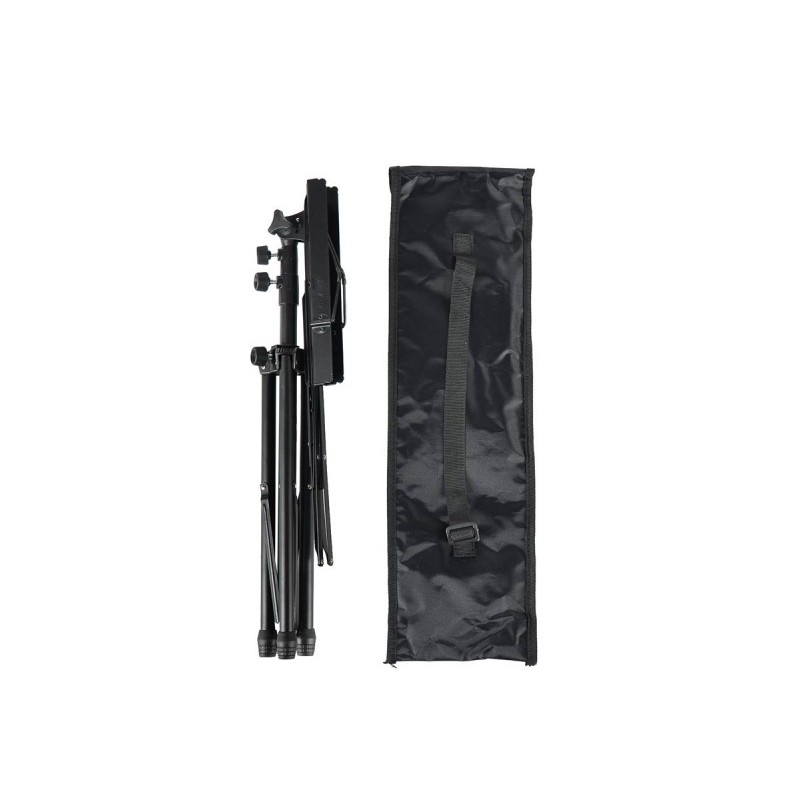 Deluks sklopivi stalak za note sa deluks futrolom. Vrlo čvrst notni stalak podesiv po visini od čvrstog metala sa vrlo čvrstim aluminujumskom osnovom i nitovanim nogama, krajevi nožica su obložene gumom koja onemogućava proklizavanje. Ceo stalak je u crnoj boji kao i futrola.